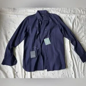ERMENEGILDO ZEGNA Navy Button-Up Shirt