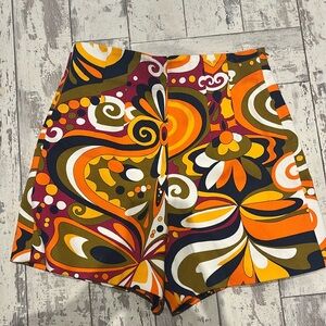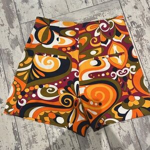 Zara, Multi Orange, White, Black, High Waisted Shorts, XS