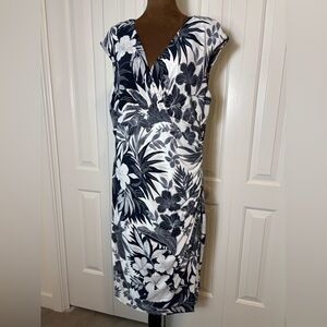 Lauren Ralph Lauren Navy and White Floral Dress Wrap Style Dress, Size 16
