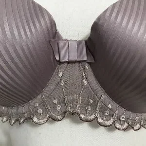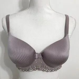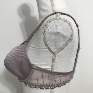 LOU Paris Light Purple Bra with Scalloped Lace and subtle vertical stripes.