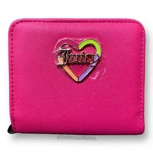 Vibrant pink wallet with Juicy Couture logo. Stylish and compact.