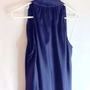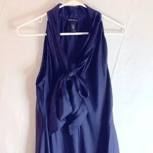Elegant navy sleeveless blouse with tie front by Banana Republic. Perfect for any occasion.