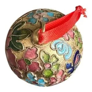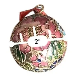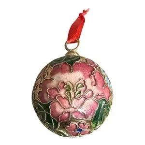 Cloisonné Vintage Christmas Ornament Floral Ball Bauble Gold Pink Green Blue