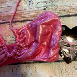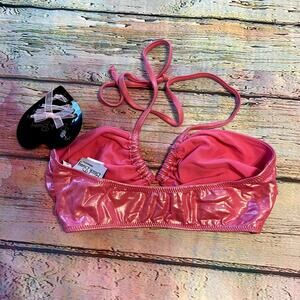 Beach Bunny Swim Bikini Top Pink Metallic Halter