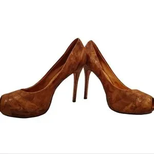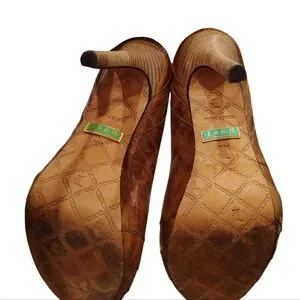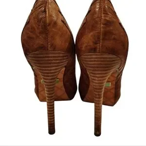 L.A.M.B. Leather Peep Toe Camel Stitched Stiletto Heels Classic Size 8m EUC