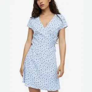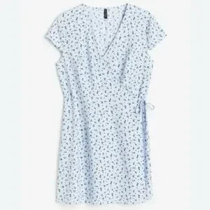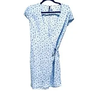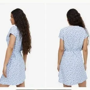NWOT- H&M Crêpe Wrap Light Blue Floral Dress Small.