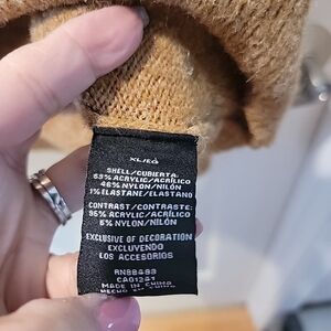 This is a North & Co. women's sweater in size XL. It features long sleeves, a round neck, and is a pullover style. The sweater is brownish leaning towards a copper or bronze color with embroidered flower accents on both sleeves. Made of acrylic material, this sweater is perfect for adding a touch of style and warmth to your outfit.
