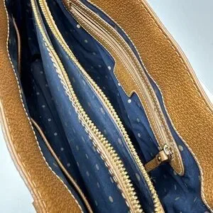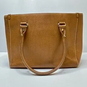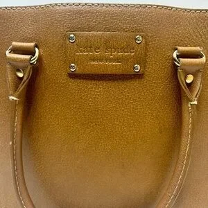 This sophisticated Kate Spade Tarrytown Quinn tan leather satchel features a structured design with gold-toned hardware accents. Its medium size and classic shape make it an ideal choice for professional settings, offering both style and practicality.