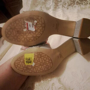 Jewels Badgley Mischka Harlyn Block Heeled Mules with Crystal Vamp