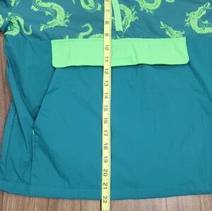 Cat & Jack Kids Windbreak Green Dragon Print 1/2 Ziip Water Resistant Hooded Jacket Size L 10/12 elastic cuffs