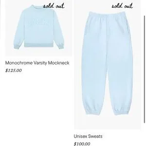 Wore the sweatshirt once, sweats never been worn but parkes sold out ice blue sweat set.