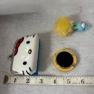 SOLD SET OF 3 HELLO KITTY Kiss Lock Pouch Keychain Bag Gold Hanger Bunny Charm