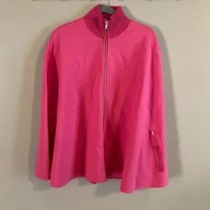 crown & ivy bright pink cape poncho. Full zip front. Ribbed knit collar. Zippered openings allow you to have your arms out or remain completely covered.