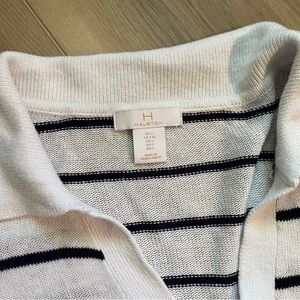 Lightweight, semi-sheer, striped, collared long sleeved sweater with side slits. Nautical vibes. No pulls or holes.