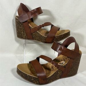 Blowfish Malibu Hazard Braid Brown Cork Wedge Platform Sandals Women's 7