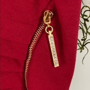 Pleated off left waist with half-moon sequined zipper