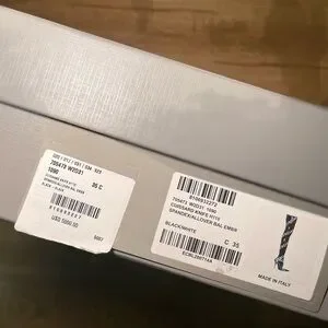 Stylish black over-the-knee boots with bold white Balenciaga branding. Perfect for making a statement. Wore only once.