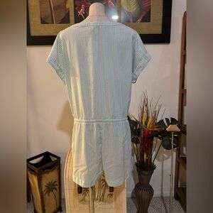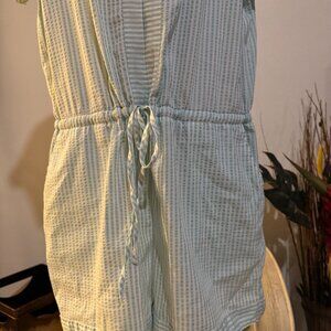 Vineyard Vines NWT Seersucker Short Sleeve Romper Retail $118 Aqua Blue White M