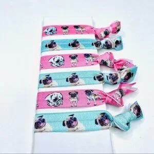 2/$10 Pink Blue Pug Puppy Hair Tie Elastics