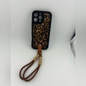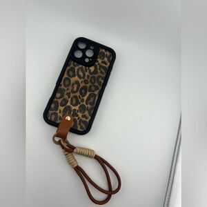 Leopard Print Phone Case with Wrist Strap for iPhone 15 Pro Max