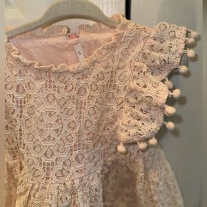 PERFECT CONDITION! Pink. Hollow Lace Pattern. Pom Pom Details. Ruffle Sleeves. Zipper Back Closure. Lined.
