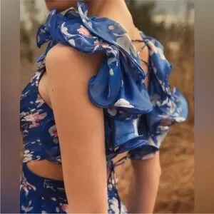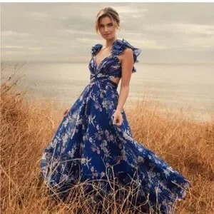 MAC DUGGAL 68520 Indy A-Line Ruffled Back-Lace Chiffon Gown sz 2