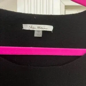 Elegant black sweater featuring studded shoulder details. Perfect for a chic look. Pit to pit is 22” with Dohlman sleeves. Accents of sparkle where sheer fabric as accents on both shoulders.