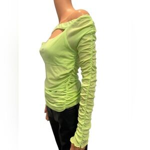 NWOT URBAN OUTFITTERS Neon Ruched Cut Out Lightweight Long Sleeve Top Medium