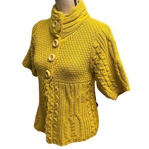 Ivy Jane Mustard Yellow Thick Knit Short Sleeve Button Front Sweater Cardigan