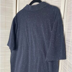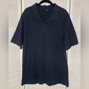 ✨ Vince men’s texture short sleeve polo. Navy with white speckling. Cotton blend. Small dark spot, not very noticeable. Light fading around the collar. Otherwise, good used condition.