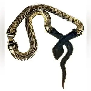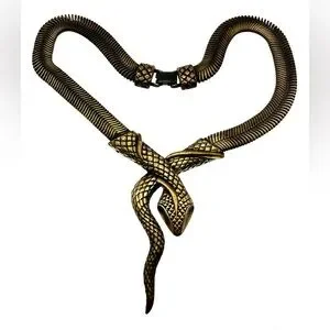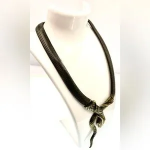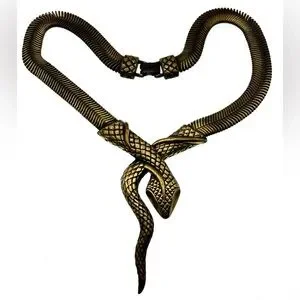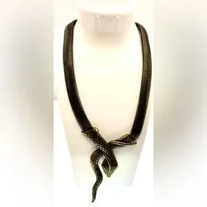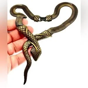 Vintage Bronze Tone Mesh Chain Snake Necklace Choker Bold Unique Statement