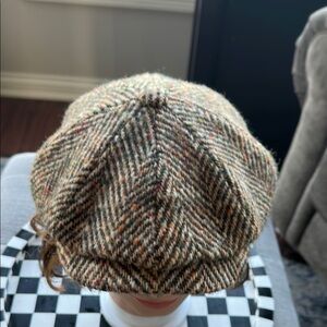 Classic tweed newsboy cap with a vintage look. Features a blend of earthy tones. Luke new condition
