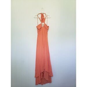 BCBGMAXAZRIA Women 10 Formal Dress Halter Neck Strappy Coral Pink 100% Silk NWOT