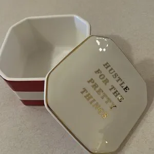 Stylish New “Hustle For The Pretty Things” Red, Gold, White Extra Large Striped Ceramic Trinket Box!