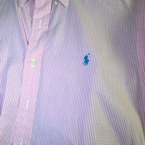 Stylish Ralph Lauren dress shirts in checkered and solid patterns. Features pink, blue, and turquoise colors. Perfect for any occasion.