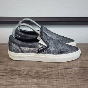 Vans Asher Women's Slip-On Skate Shoes Size 6.5 Metallic Silver