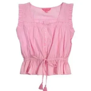 Stay cute and comfy in this Simply Southern women’s sleeveless top in a lovely pink shade. Features an elastic and drawstring waist for a flattering fit that cinches just right. Lightweight and perfect for warm weather or layering under a jacket.