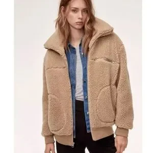 Wilfred Free The Teddy Full Zip Jacket Tan Large with pockets