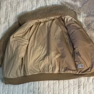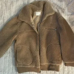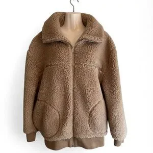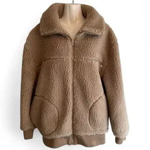 Stay warm and fashionable in this super cozy teddy jacket in a classic tan color. Perfect for layering during cooler seasons, this jacket features a soft, plush texture that feels like a hug!