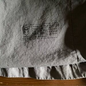 Lightweight cotton twill fabric with a sewn-in cotton lining. Plenty of button pockets. 2 interior slash pockets. Two-button front closure. There is a button hole on the lapel, but no button. I believe it’s just decoration.