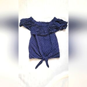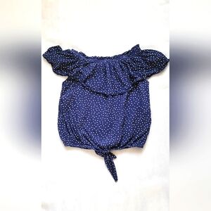 NWOT! Express Drop Shoulder Tie-Front Women's Polka Dot Navy Blouse Size Small. Pit To Pit-18 Waist-20 Length-22. Make Offer!