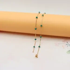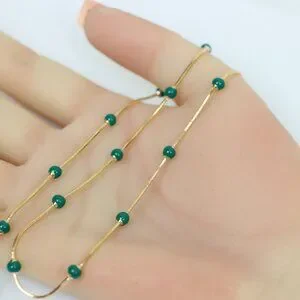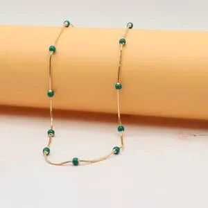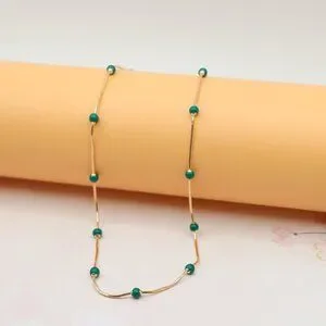 A beautiful blend of minimalism and charm, this rose gold necklace features delicate green beads for a unique and refreshing look. Made with high-quality brass and finished with gold plating, it's ideal for everyday elegance.