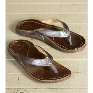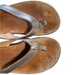 OluKai Kumu Full Grain Leather Sandals Flip Flops Thong Slip On Metallic Bronze Size 9