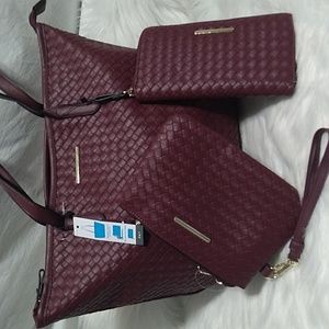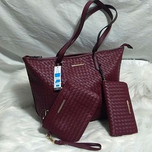 Brand new with tags, Stunning Faux Woven Leather Tote, Wristlet Pouch Crossbody and Zip Around Wallet Bundle!!