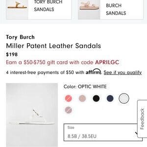 Tory Burch Patent White Sandals - Size 9