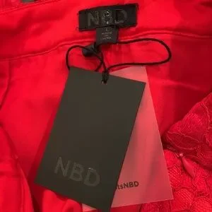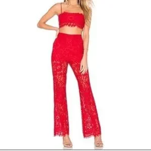 NBD High Rise Red Lace Pants with Frayed Hemline NEW!