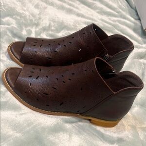 Step out in style with these elegant brown peep-toe shoes. Perfect for any occasion, they offer both comfort and sophistication.