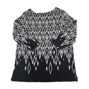 Rafaella Top XXL Black White Abstract Geo Diamond Rhombus Print Tee Cotton Tunic