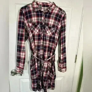Tommy Hilfiger Denim plaid/flannel like dress Size Medium Blue/Red/White. Belted