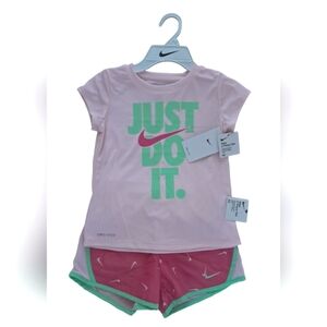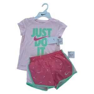 Nike Girls Dri FIT Shorts & Tee Shirt Short Set NWT Size 6 X Laser Fuchia